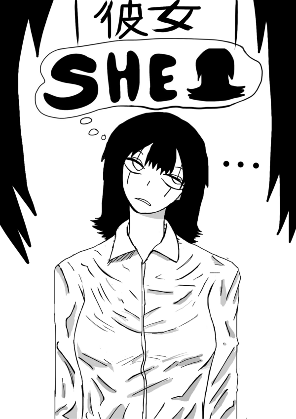 Day to Day life of a complicated girl who is called "She" by others, she hates working and prefers to be alone. Her real name is Shiroko, she struggles with her social life and her self-centered desire to create a subjective life where everything fits her worldview, which ultimately just ends up embarrassing her in the end of reality. She also works at a haunted store that attracts weird people and creatures alike, yet another problem for her miserable life. In short, the story is random.